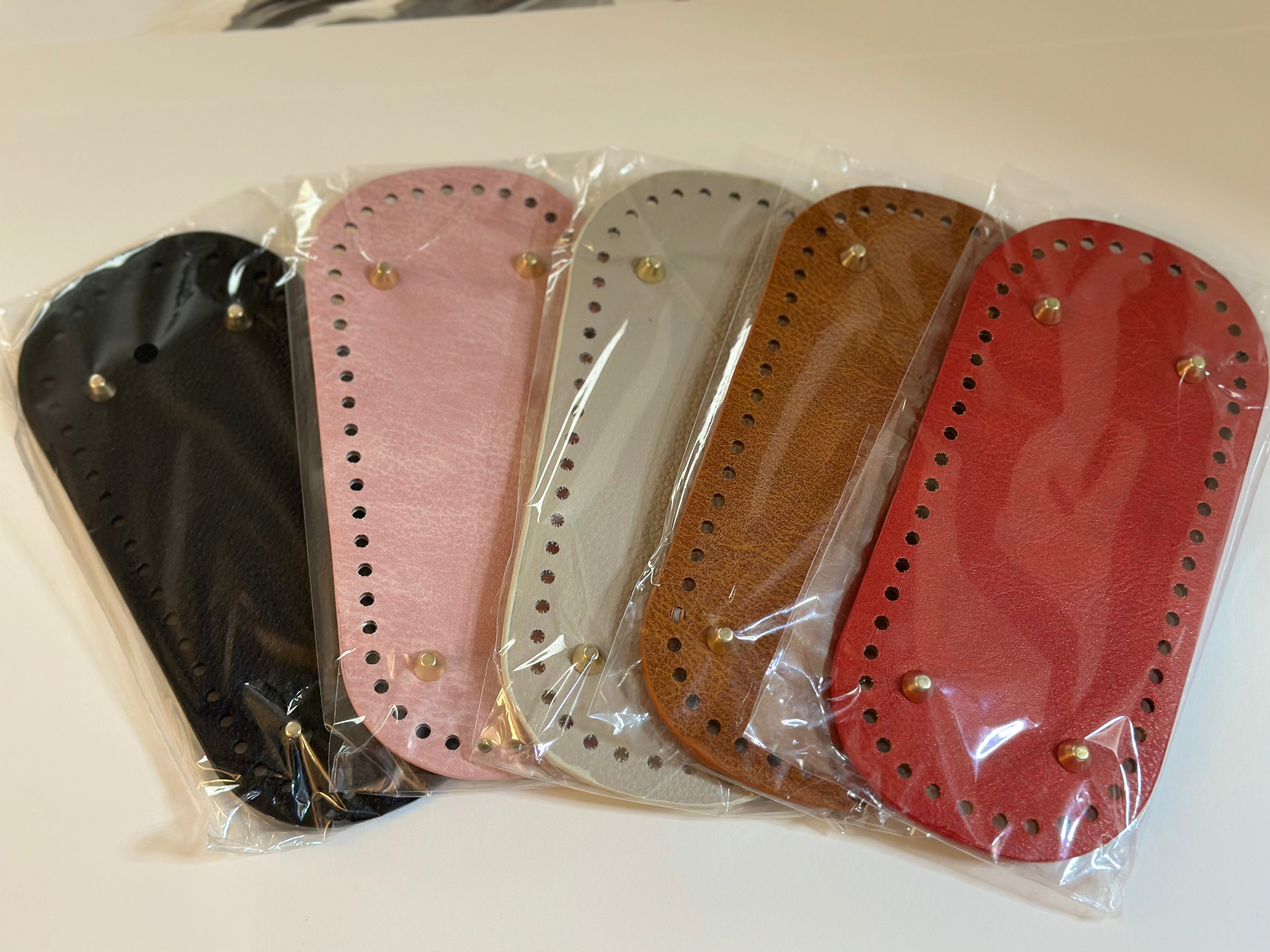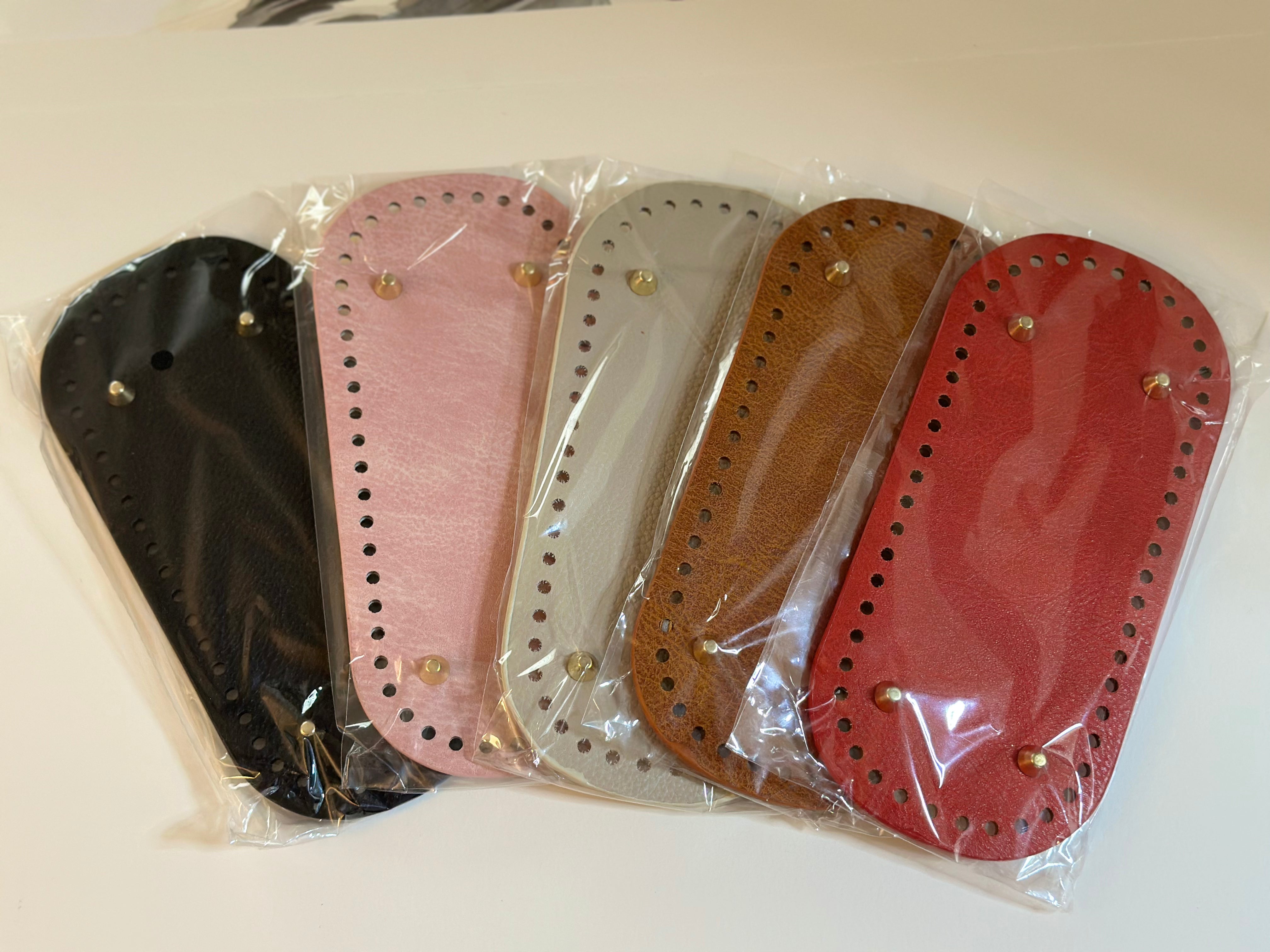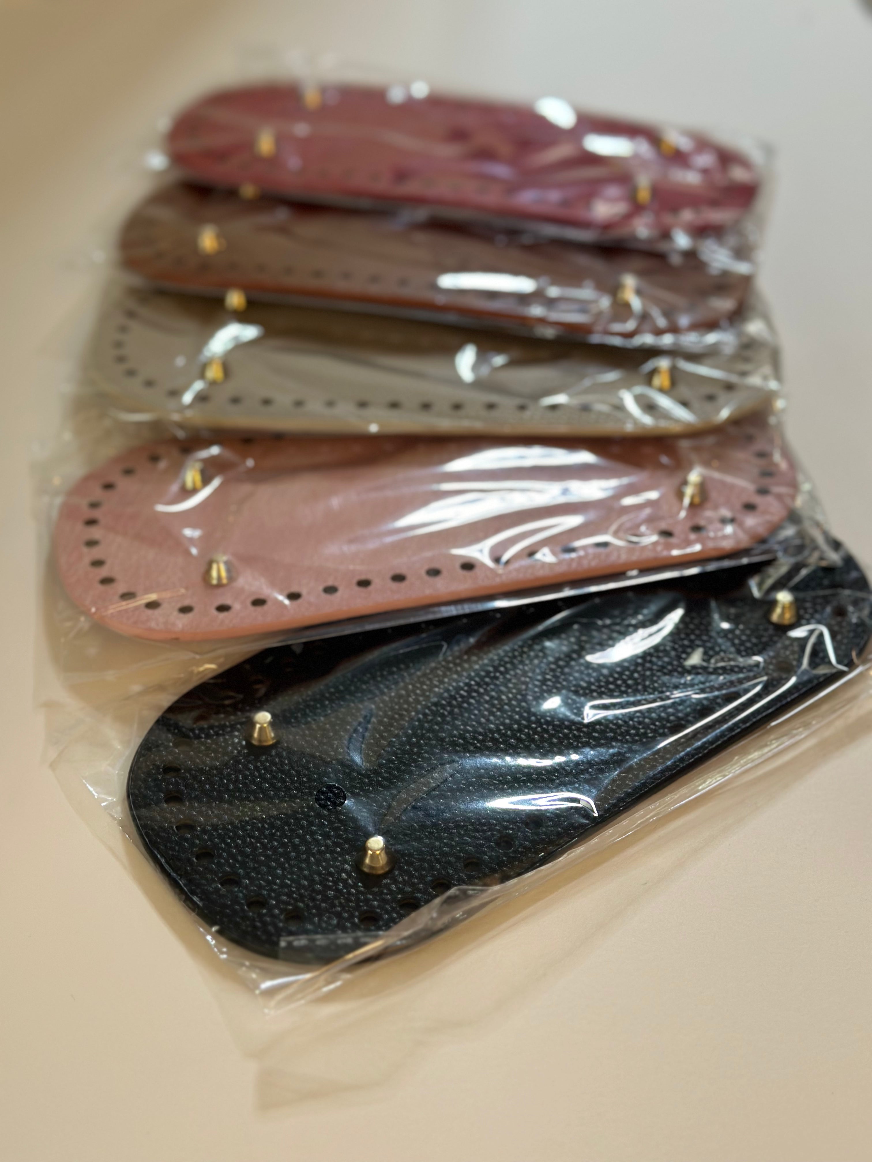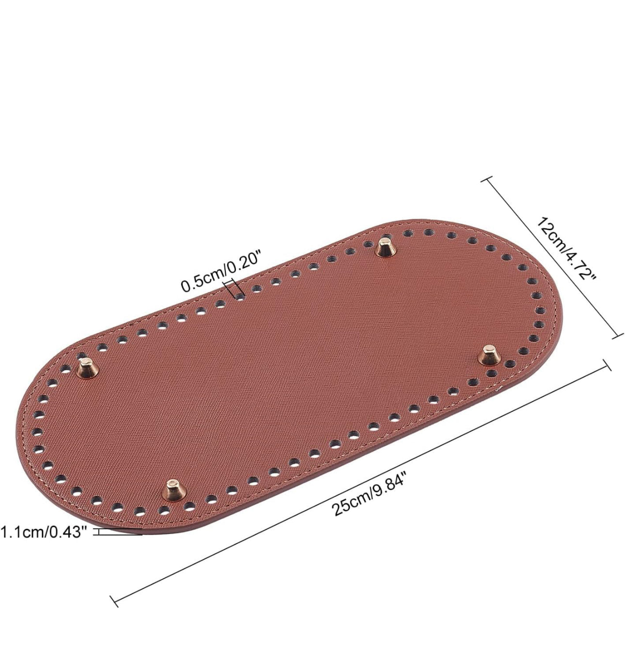 As a product perfect for DIY enthusiasts, this Crochet Handbag Base is made of reusable and durable PU leather. With a smooth surface and 4 fixed protruding nails, it prevents wear and tear and maintains a three-dimensional effect. This versatile base can be used for various bags, including handbags, totes, and backpacks.