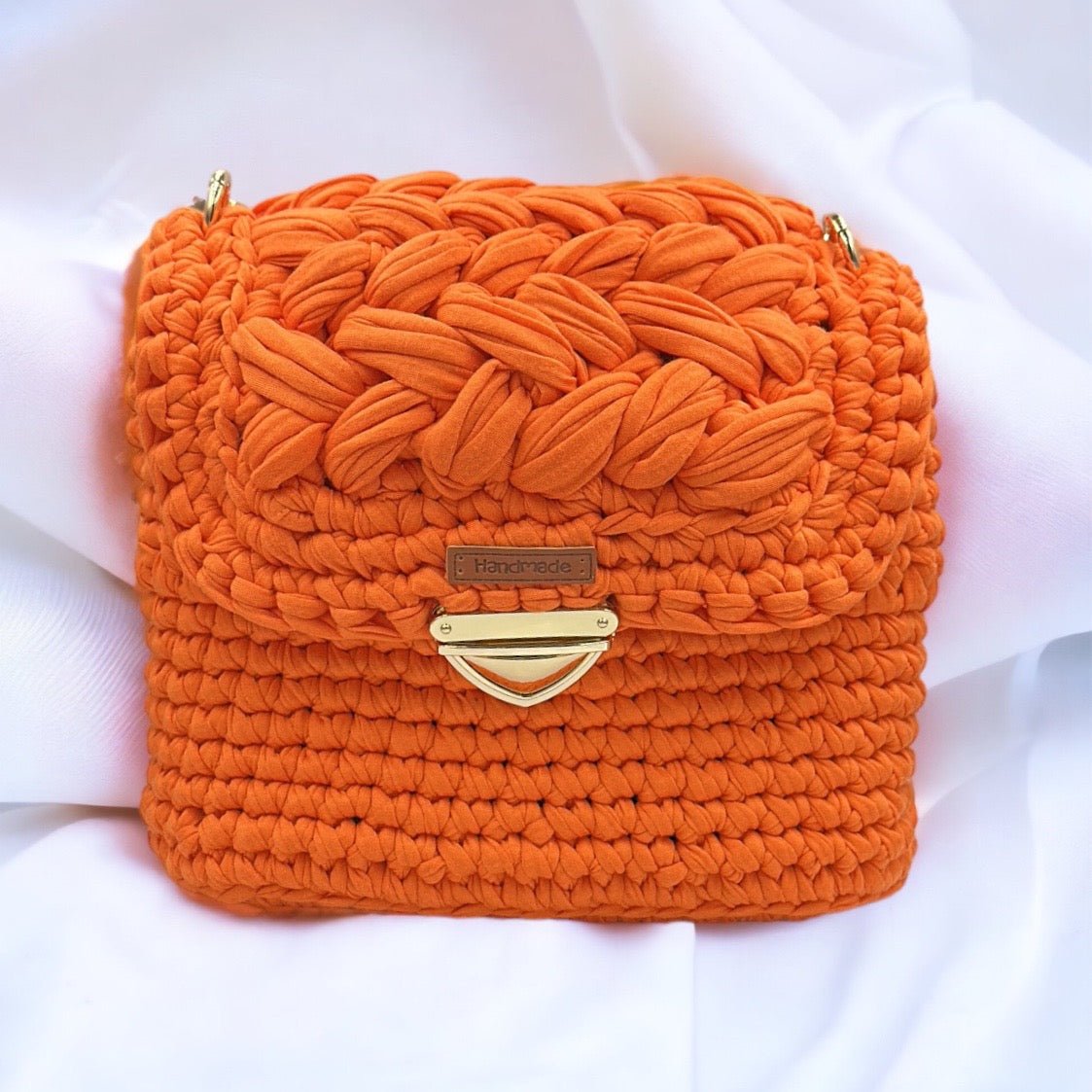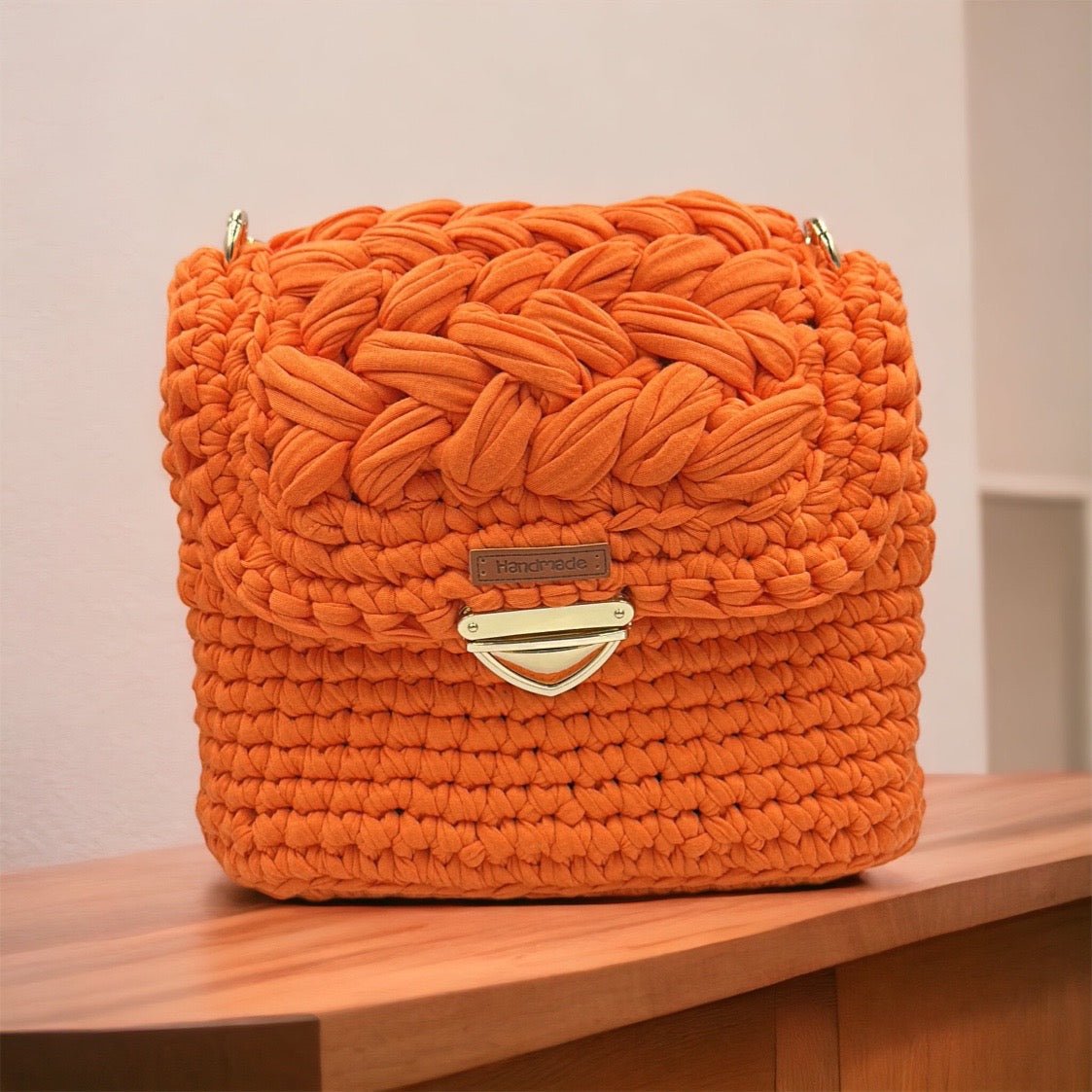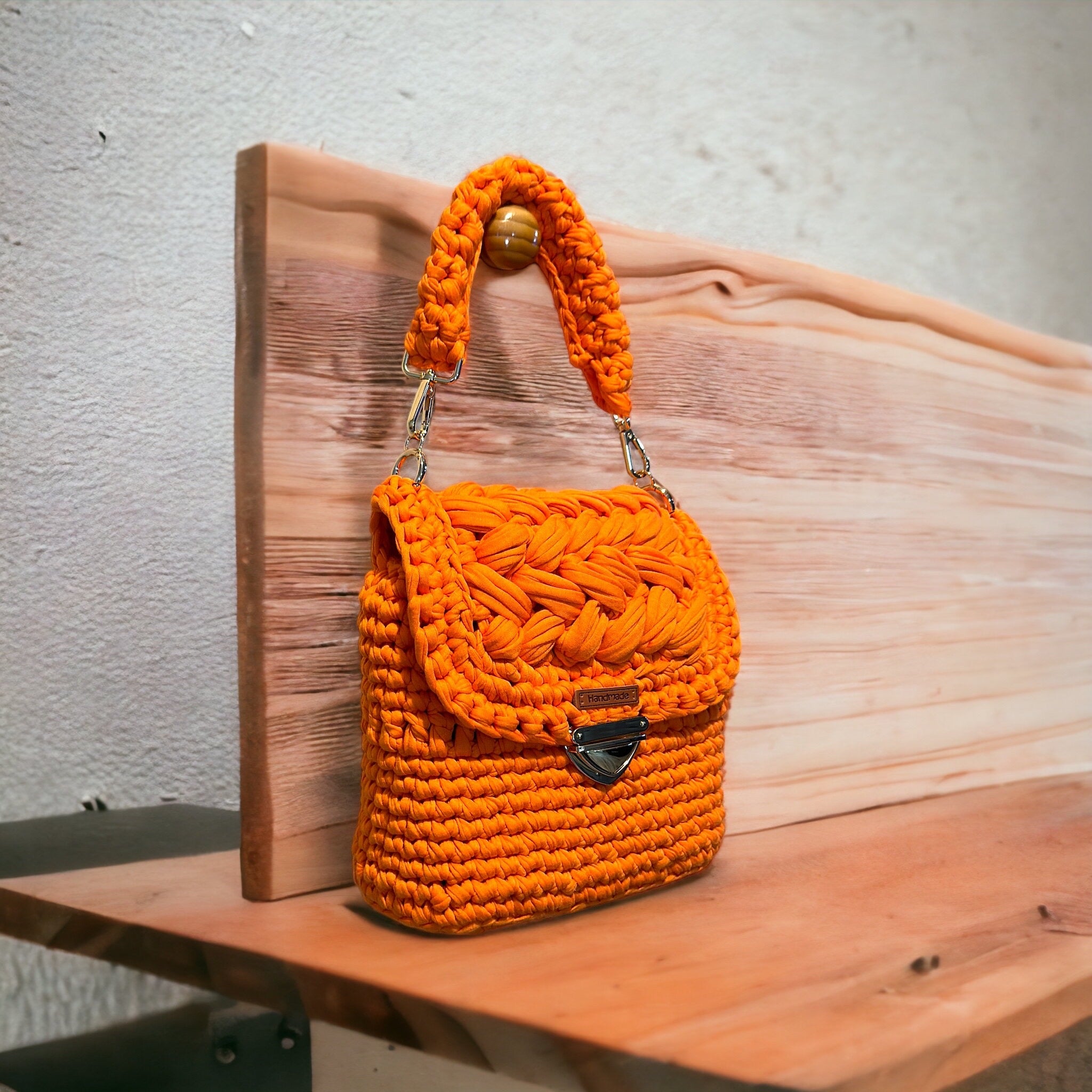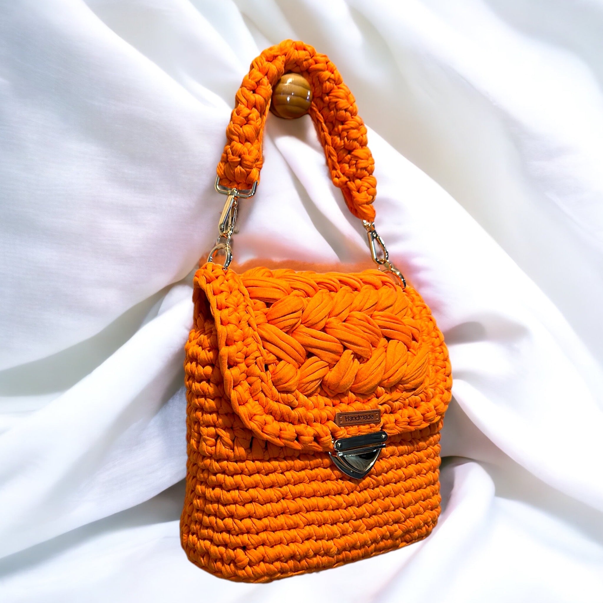 Introducing our stunning Crochet Handmade Women's Handbag in a vibrant shade of orange, perfect for adding a pop of color to any outfit! Each bag is meticulously crafted by skilled artisans using 100% recycled yarn, making it not only stylish but eco-friendly too.