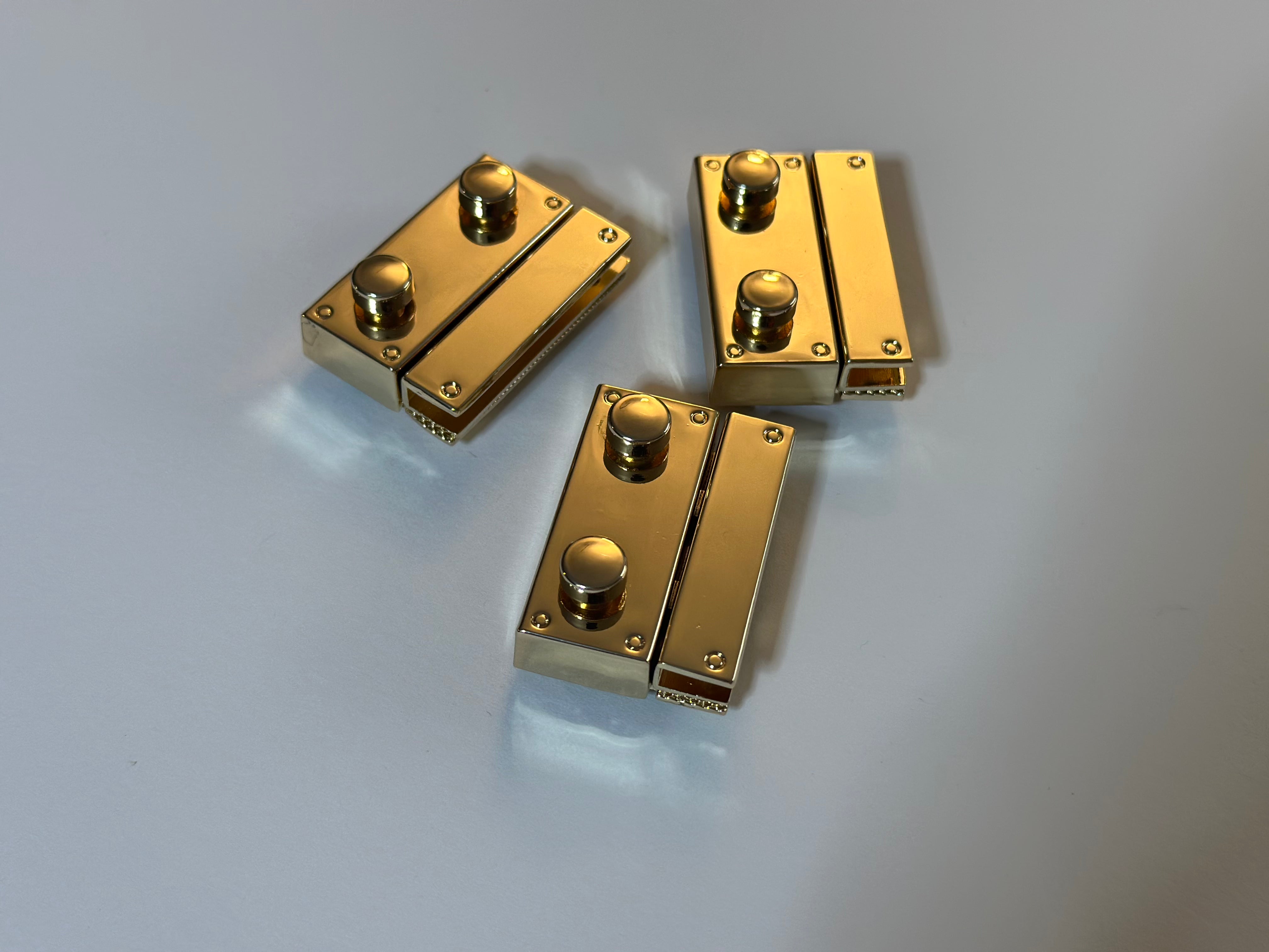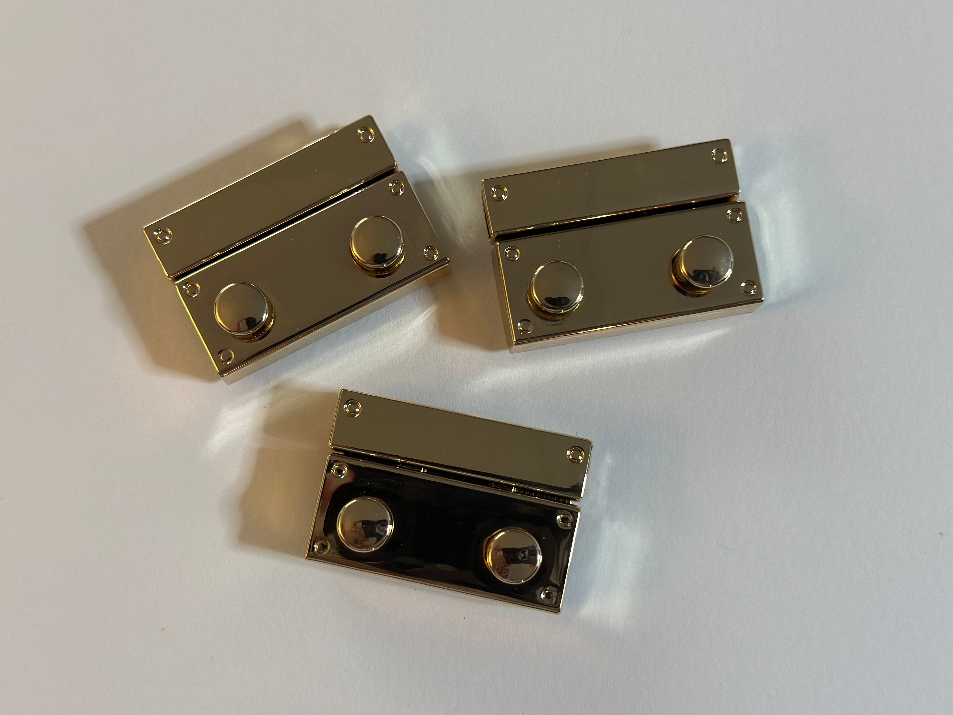 This handbag closure is made of high-quality gold metal, providing a secure and stylish closure for your handbag. Perfect for handmade bags, this closure adds a touch of elegance and durability to your design. Enhance your handbag's aesthetic and functionality with this top-quality closure.
