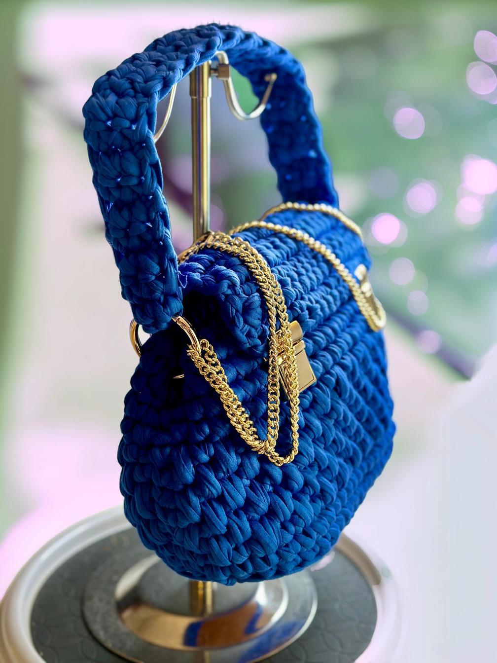 The Crochet Double Serrure Handbag is the perfect blend of style and functionality. Made with a delicate crochet design in a beautiful blue hue, this handbag adds a touch of elegance to any outfit. With its double closure and gold chain, your belongings will stay safely secured while you're on the go. Make a statement with this must-have accessory.
